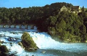 Rheinfallbecken aus kann man die ganze Wucht der Wassermassen auf sich